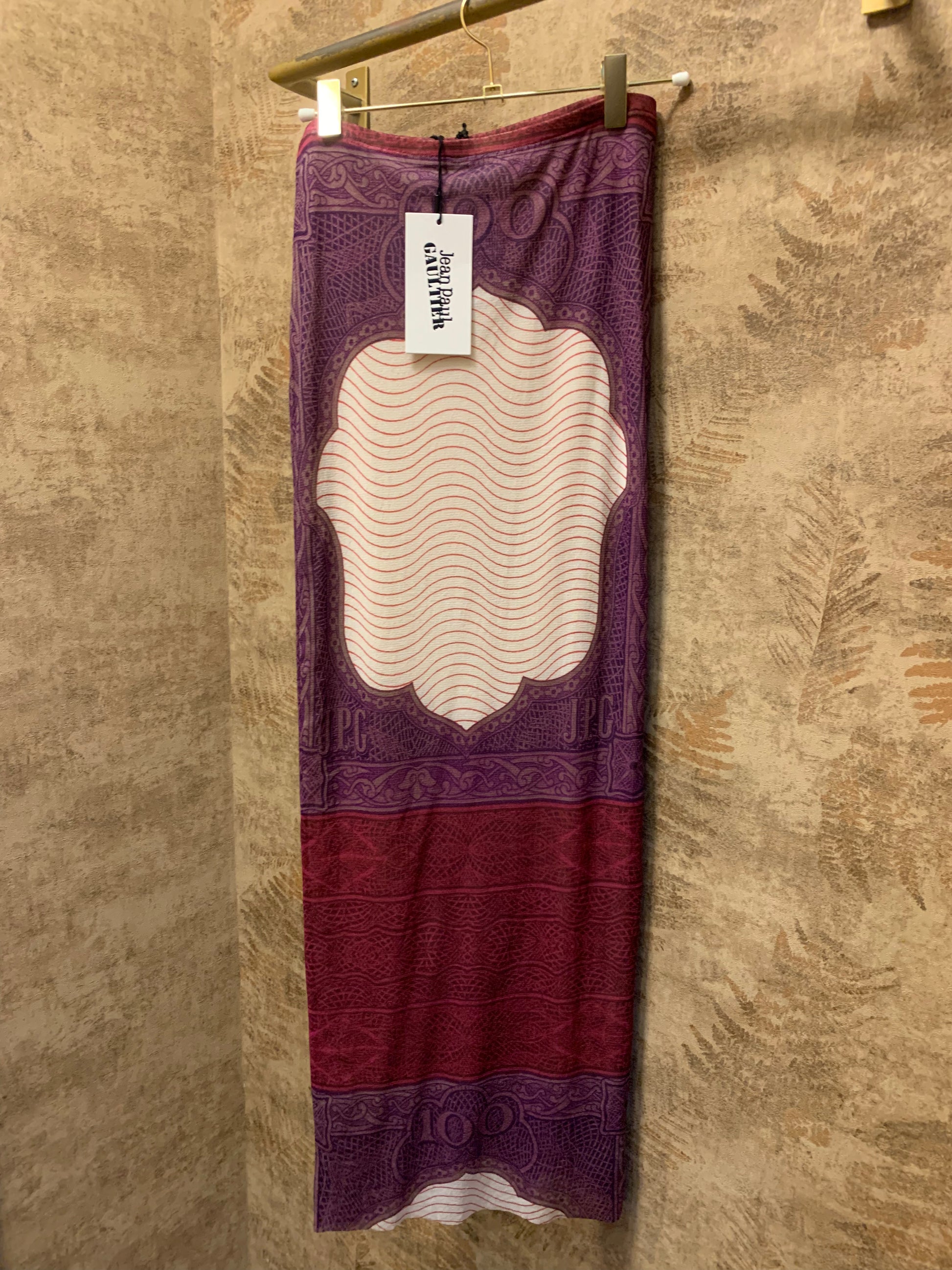 MESH MONEY PRINT SKIRT.